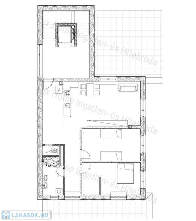 - 26,33 nm nappali konyhával