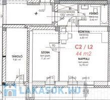 Az itt meghírdetett lakás a C2 épület, földszinti, kertkapcsolatos saroklakása, alapterülete 43 nm+ 25 nm terasz,kb. 40 nm kert, amerikai konyhás nappali, szoba,fürdőszoba,előtér.