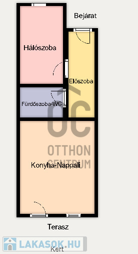 - A nappaliból nyílik egy 16nm-es terasz, illetve 54nm-es kert.