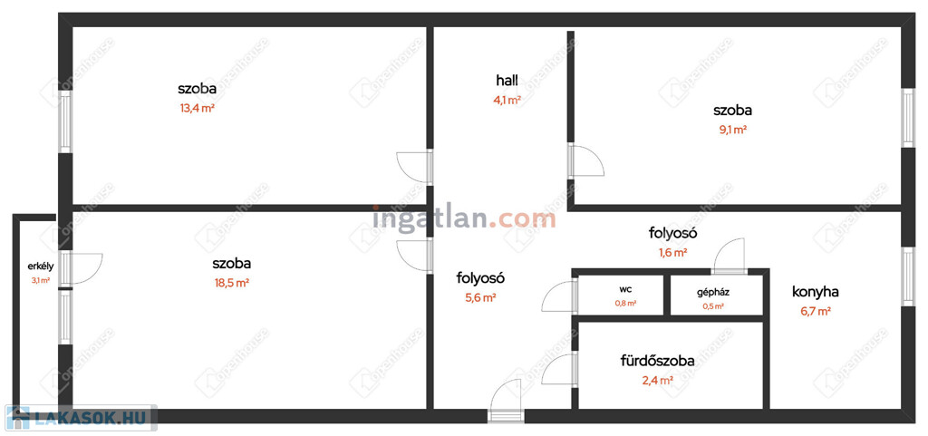 Az ingatlan paraméterei, helyiségei:
