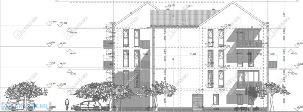 Komáromban épülő új 15 lakásos társasház mely 43nm-67nm-es kialakításúak, 15 tároló egységgel, erkéllyel (egy lakás két erkélyes kivitelezésű)és kültéri térfelszíni gépjármű parkolóval tervezett ingatlan a város központhoz közeli zöldövezeti részén helyezkedik el.