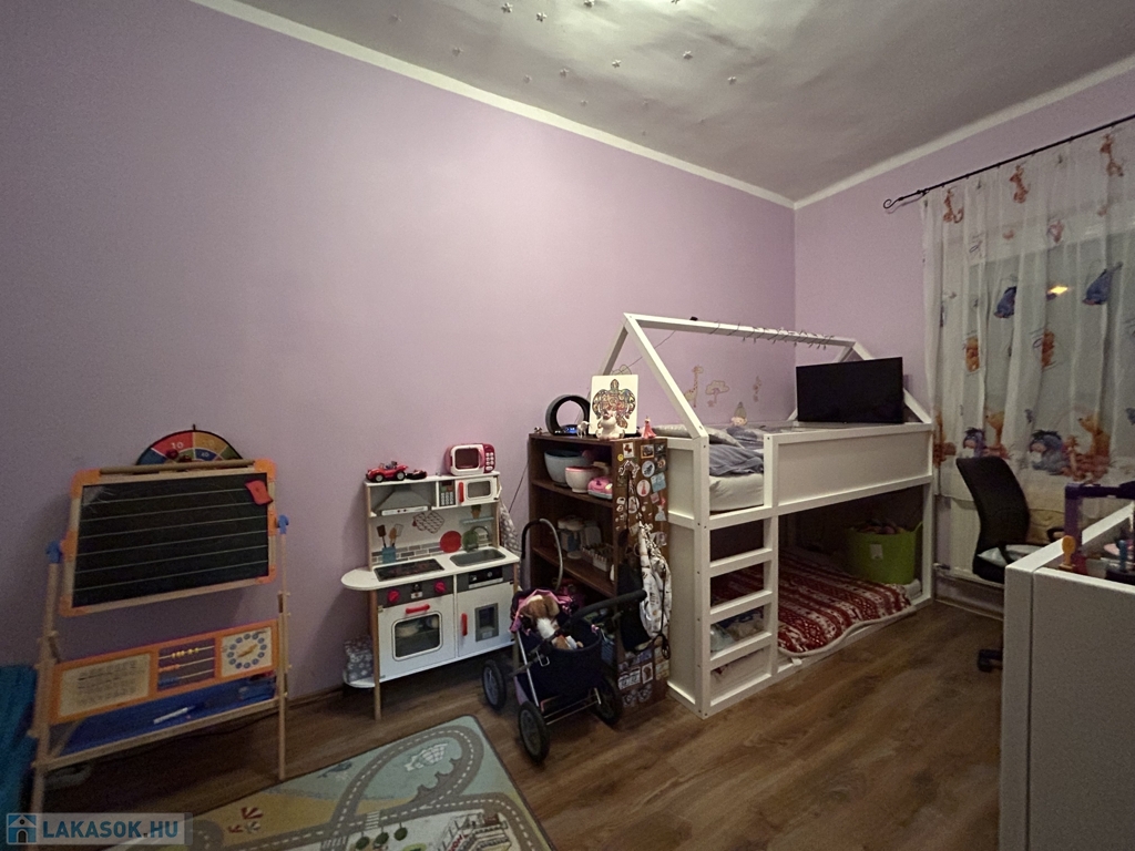 Az első emeleti elhelyezkedésű, 94 négyzetméter alapterületű, 4 szobás lakás minden igényt kielégít.