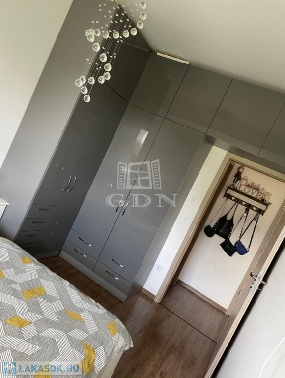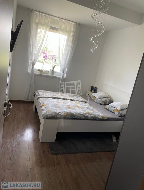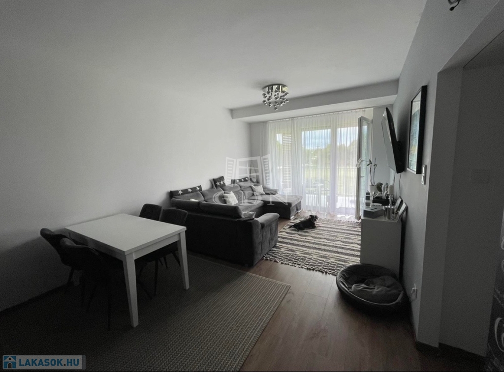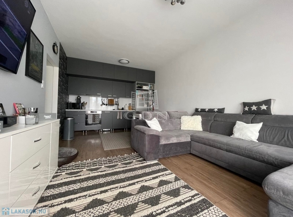 Az 1. emeleti, 60 négyzetméteres ingatlan amerikai konyhás nappalival és 2 szobával rendelkezik, ideális választás lehet családok vagy befektetők számára.