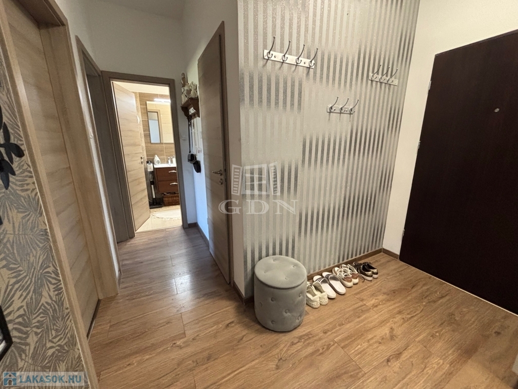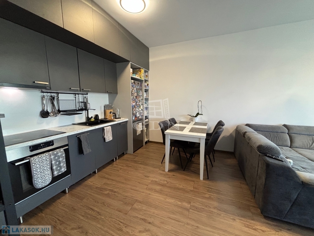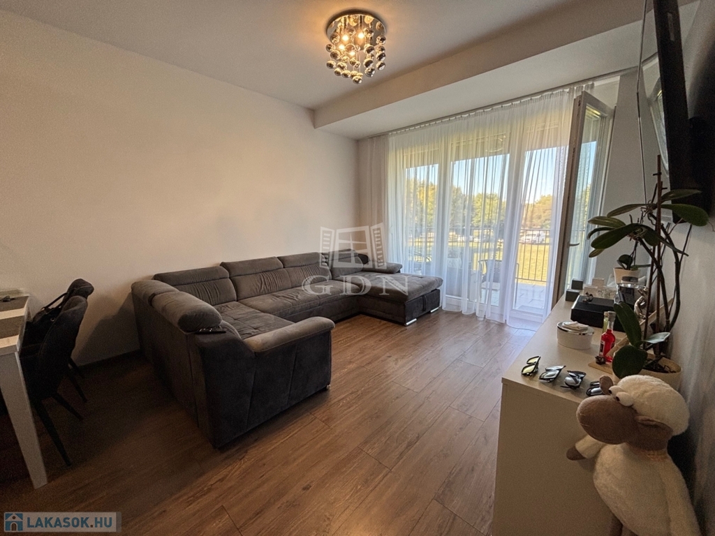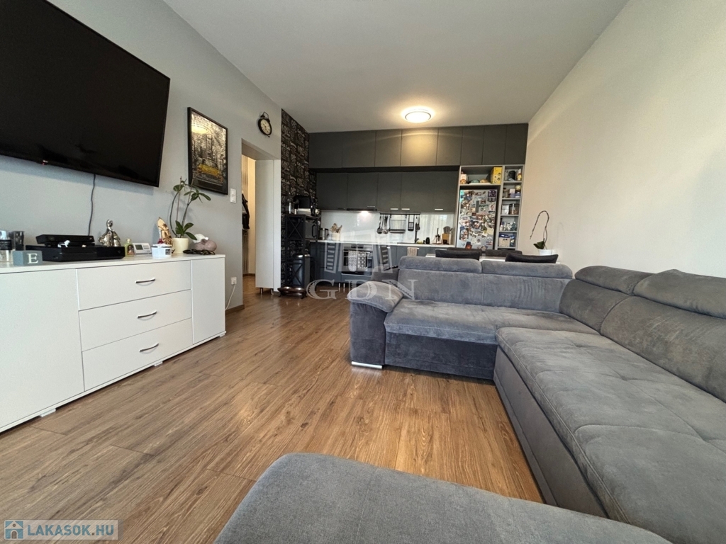 Az 1. emeleti, 60 négyzetméteres ingatlan amerikai konyhás nappalival és 2 szobával rendelkezik, ideális választás lehet családok vagy befektetők számára.