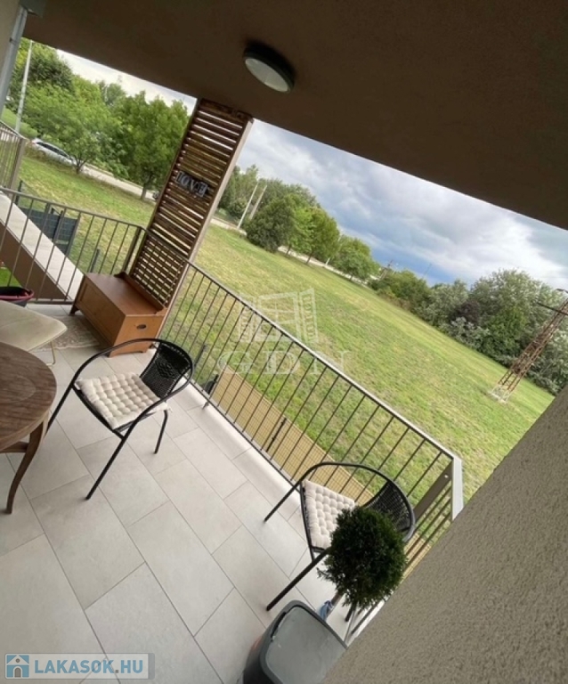 A lakáshoz tartozik egy 7 négyzetméteres terasz is, ahol a reggeli kávéját élvezheti a friss levegőn.