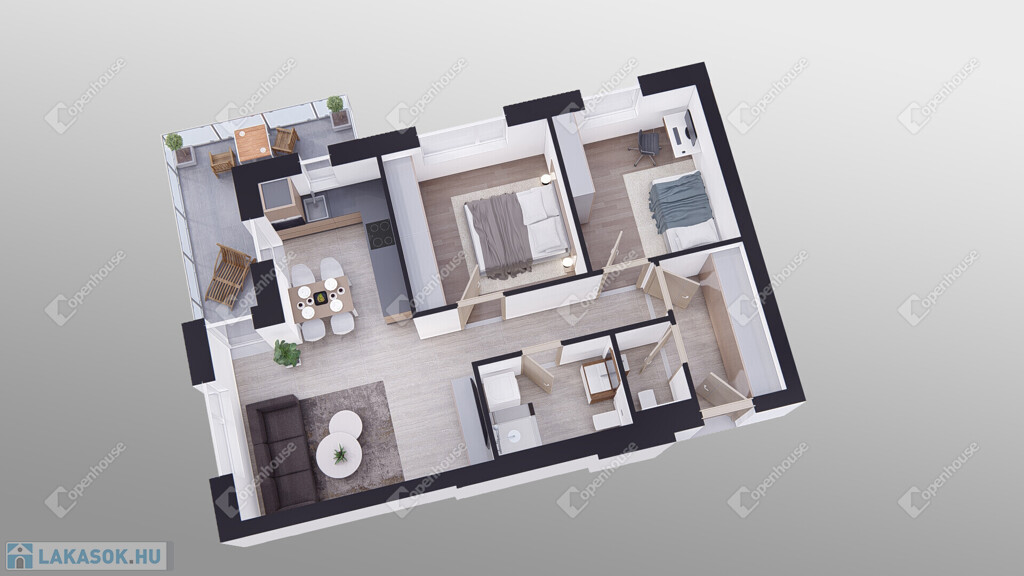 Nappali + 2 hálószoba