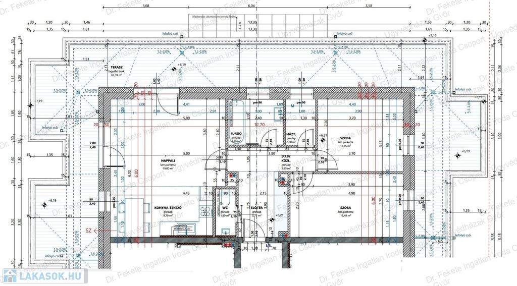 3 oldalról világos lakás, körbe 62,39 nm-es terasz (nevezhetjük akár Penthouse-nak is)