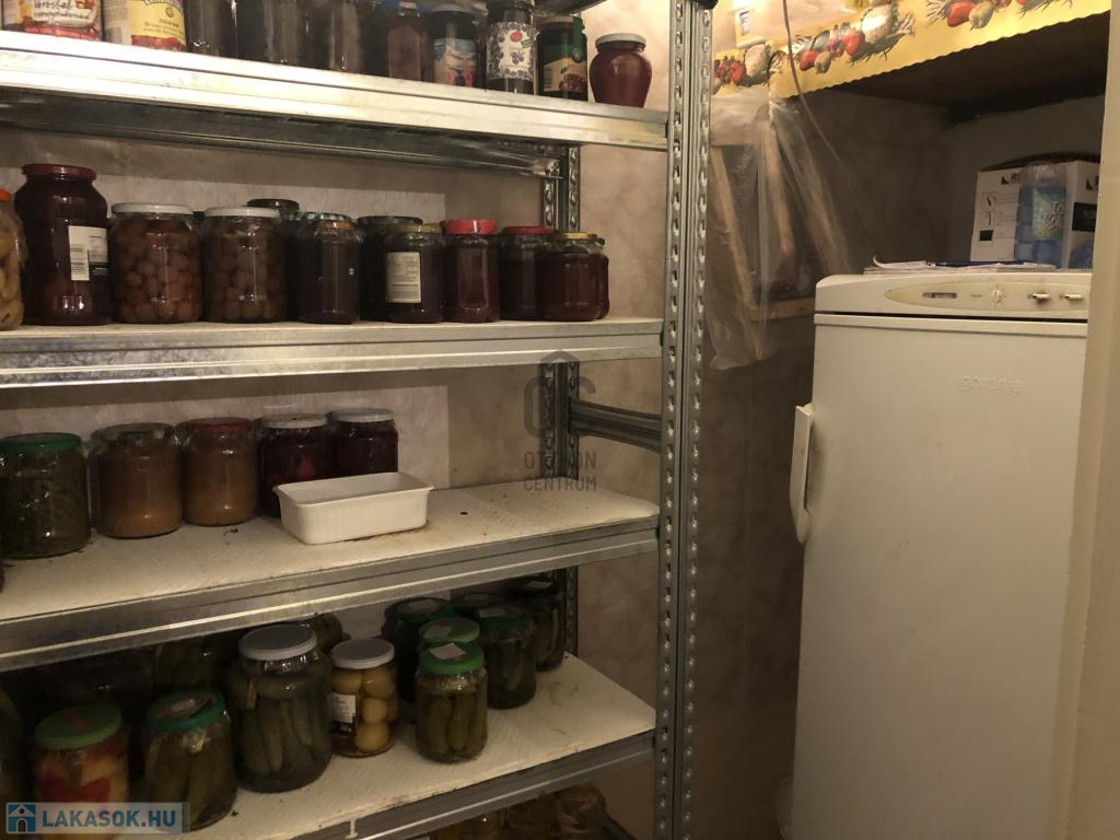 Az ingatlan pinceszintjén, ahová az előszobából tudunk lemenni, egy mellékhelyiség, kamra, műhely, kazánház és egy tároló található, amely jelenleg szobának van kialakítva.