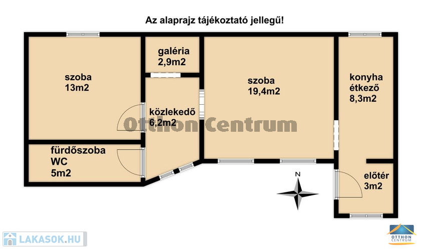- helyiségei: előtér, konyha + étkező, 2 szoba, egy kis galéria, közlekedő, fürdőszoba