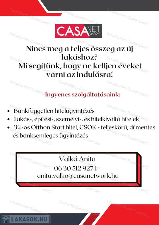A CasaNetWork Balatonalmádi irodája által kínált ingatlan jellemzői: