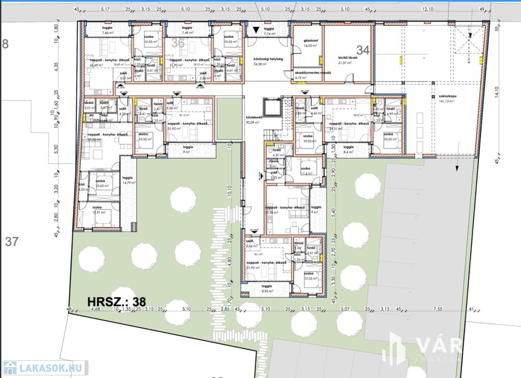 Makón, presztizs lokációval rendelkező - Makói fürdőtől 30 méterre - a Szent János téren, Eladó egy most induló, tégla építésű, FÖLDSZINTI, 50,18 nm-es élettérrel rendelkező, amerikai konyha nappali plusz két szobás loggiás lakás (004.lakás), liftes házban.