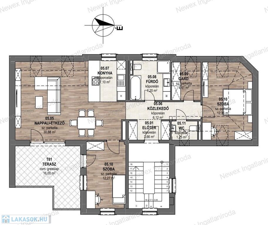 - A lakások hideg- és melegburkolatai, valamint a beltéri ajtók a vásárló igényei szerint választhatók, így mindenki saját ízlésére szabhatja új otthonát.