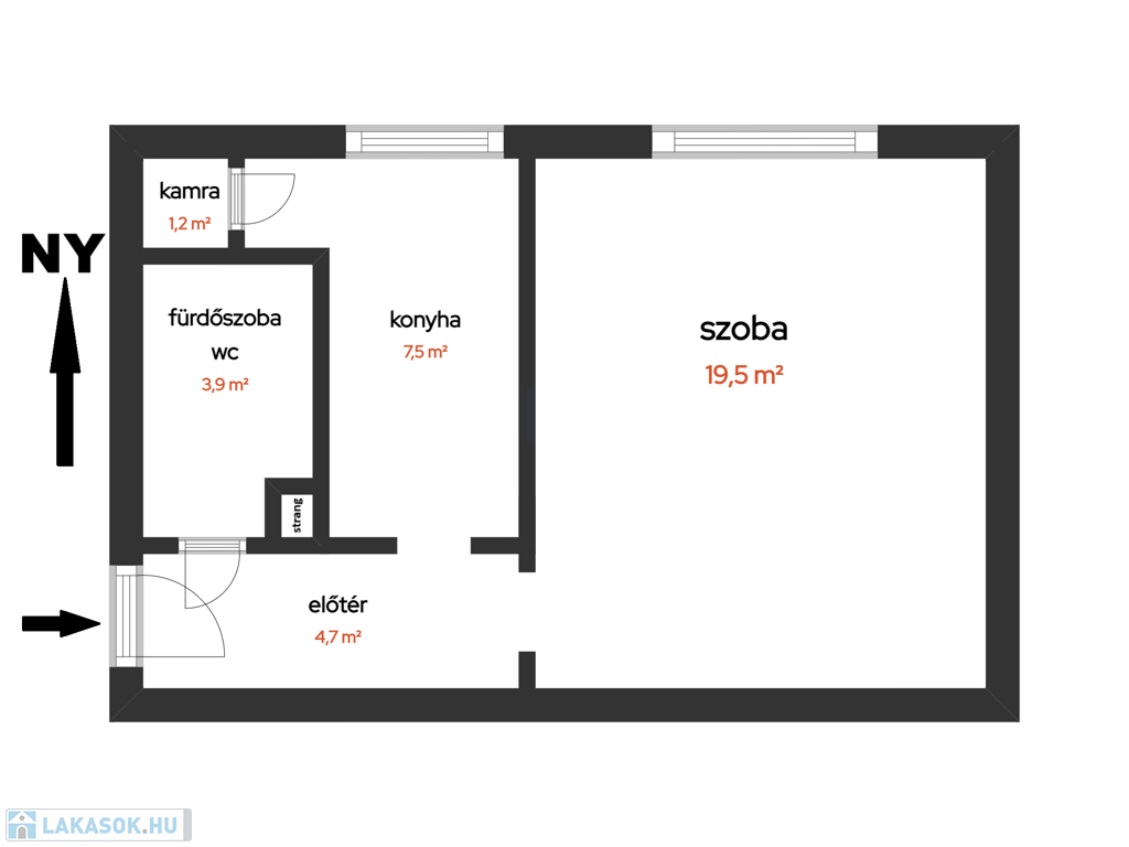 1 szoba + konyha + kamra + előszoba + fürdő , WC