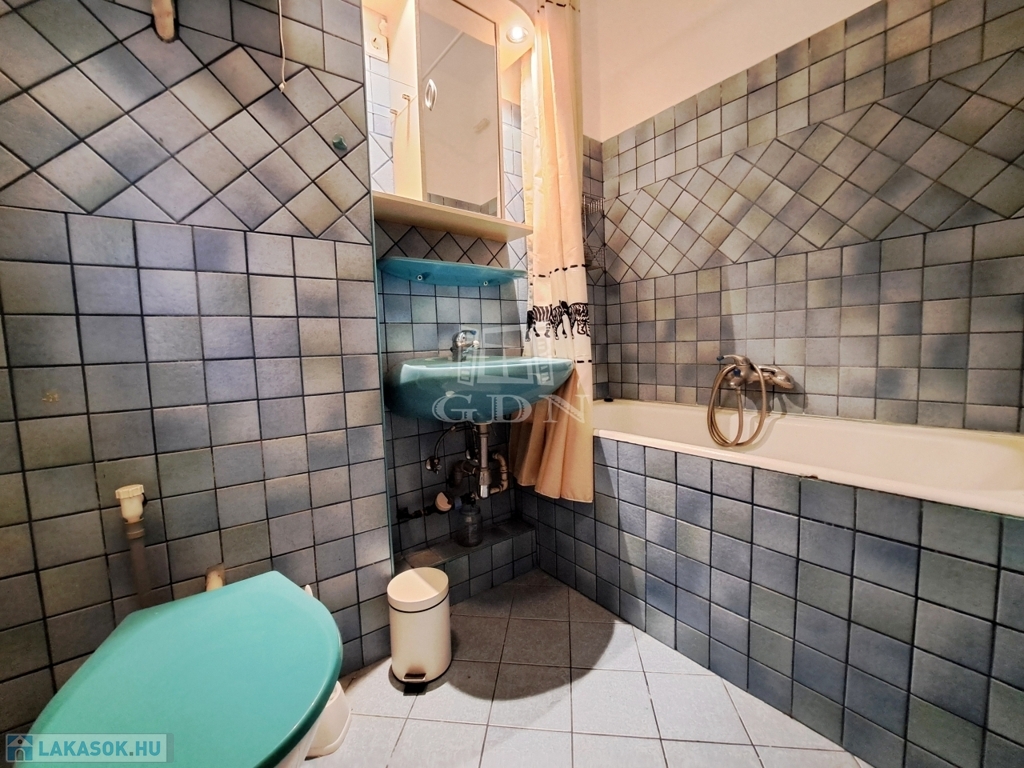 *fürdőszobában kád, a melegvizet gázátfolyós vízmelegítő biztosítja