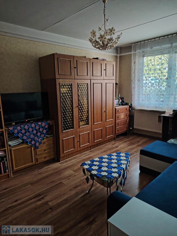 Eladásra kínálunk egy 35 nm-es (másfél szobás), átlagos állapotú, távhős lakást, egy 4 emeletes társasház magasföldszintjén.