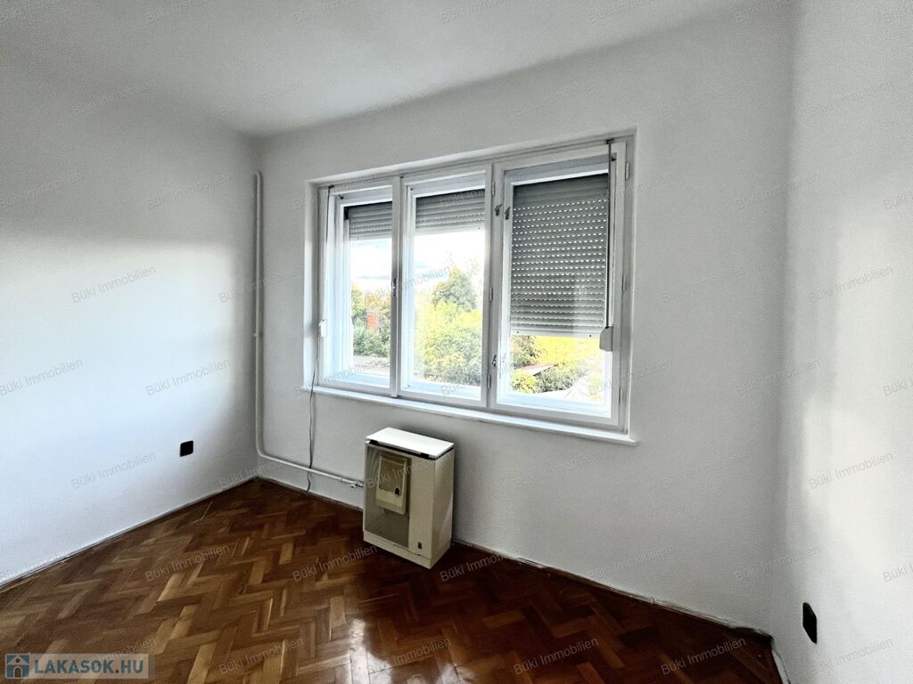 A lakás elosztása egyedi, fekvése észak–déli, így minden helyiség világos és napfényes. A szobákban jó állapotú tölgyfa parketta található, mindenhol redőny növeli a kényelmet, a dupla fa ablakok pedig télen jól tartják a meleget, nyáron pedig kellemes klímát biztosítanak. A konyha kényelmes méretű, a hozzá tartozó kamra praktikus megoldást kínál. A fürdőszoba kádas, a WC külön helyiségben található, ami jelentős előnyt jelent a mindennapokban. A nappalihoz egy kisebb, 2 m²-es terasz kapcsolódik, amely bár nem nagy, mégis hangulatos pihenési lehetőséget nyújt.