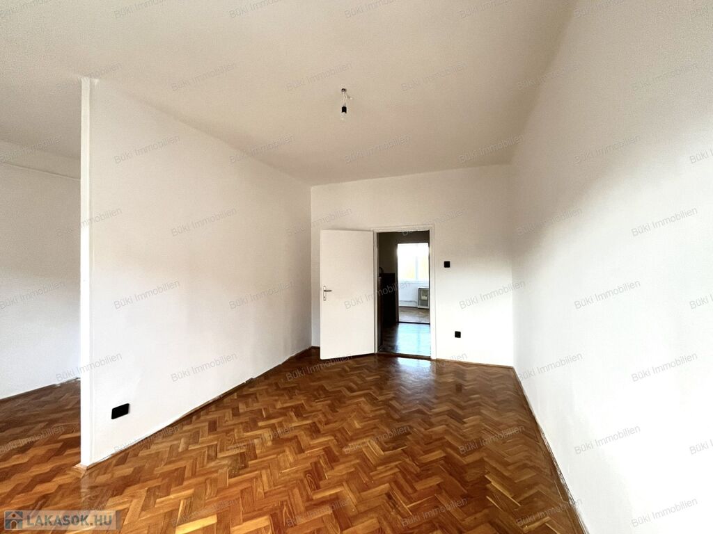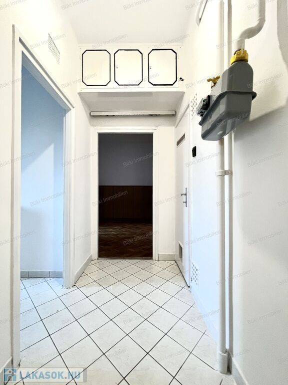A lakás elosztása egyedi, fekvése észak–déli, így minden helyiség világos és napfényes. A szobákban jó állapotú tölgyfa parketta található, mindenhol redőny növeli a kényelmet, a dupla fa ablakok pedig télen jól tartják a meleget, nyáron pedig kellemes klímát biztosítanak. A konyha kényelmes méretű, a hozzá tartozó kamra praktikus megoldást kínál. A fürdőszoba kádas, a WC külön helyiségben található, ami jelentős előnyt jelent a mindennapokban. A nappalihoz egy kisebb, 2 m²-es terasz kapcsolódik, amely bár nem nagy, mégis hangulatos pihenési lehetőséget nyújt.