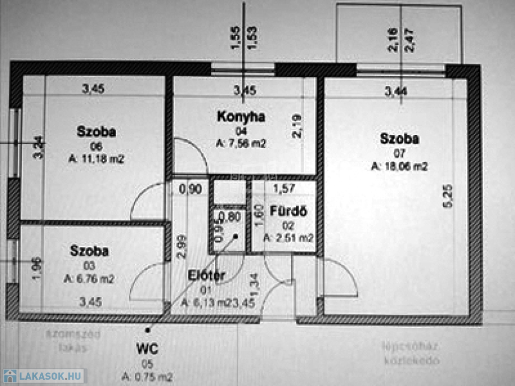 Elrendezés: 1 nappali + 2 hálószoba, konyha, fürdőszoba, WC, közlekedő, erkély