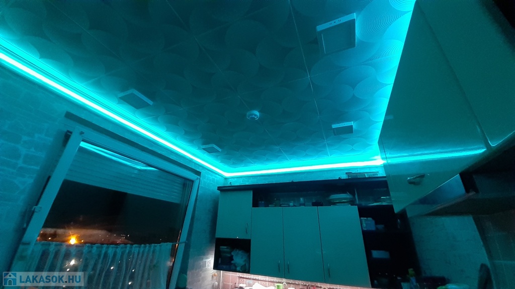 Előszobában, konyhában és nappaliban rejtett mennyezeti LED világítás került beépítésre.