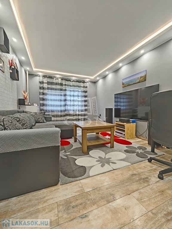 Eladó Miskolc, Győri kapuban, az Virág utcában, egy 2018-21. között részben FELÚJÍTOTT, 63 m2-es, 3 szobás, DÉLI fekvésű, EGYEDI MÉRŐS, földszinti (4 emeletes házban) panellakás.