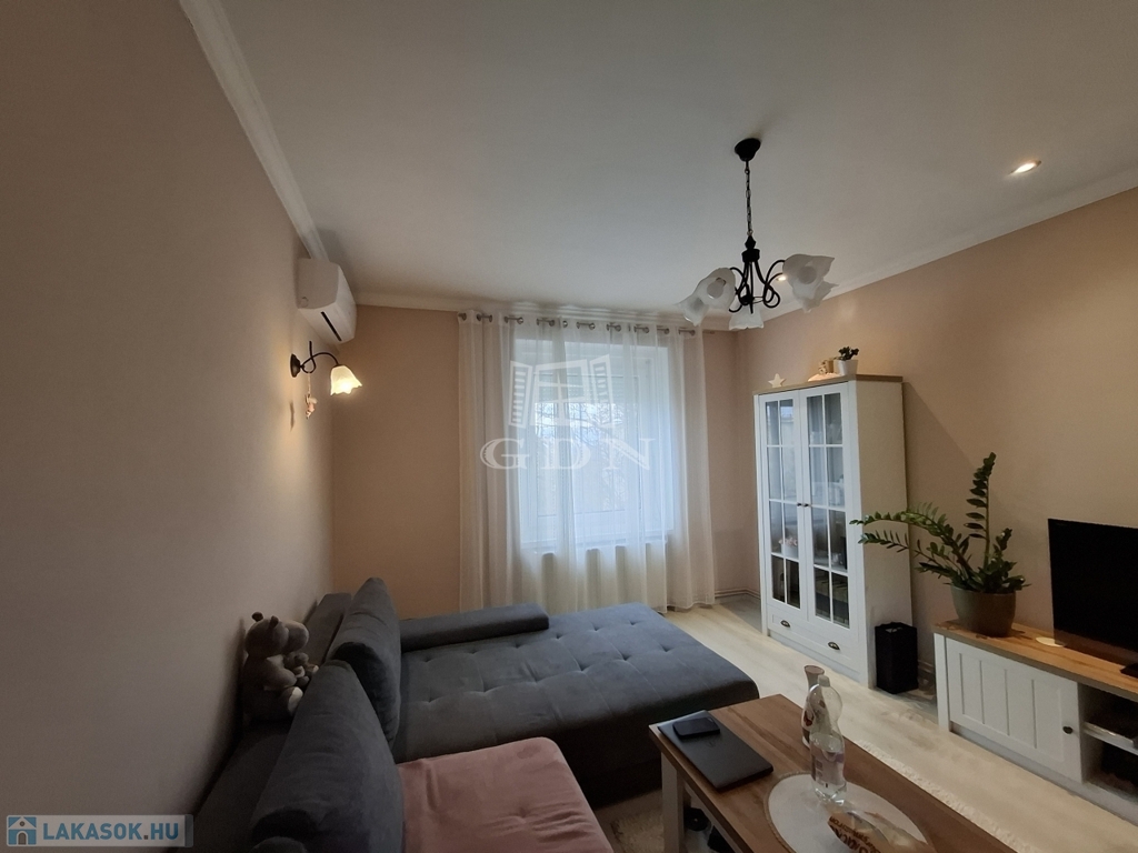 Házközponti fűtés és klíma biztosítja a kellemes hőmérsékletet. Minden nyílászáró hőszigetelt, szép állapotú, a lakás rendezett, tiszta, felújított.