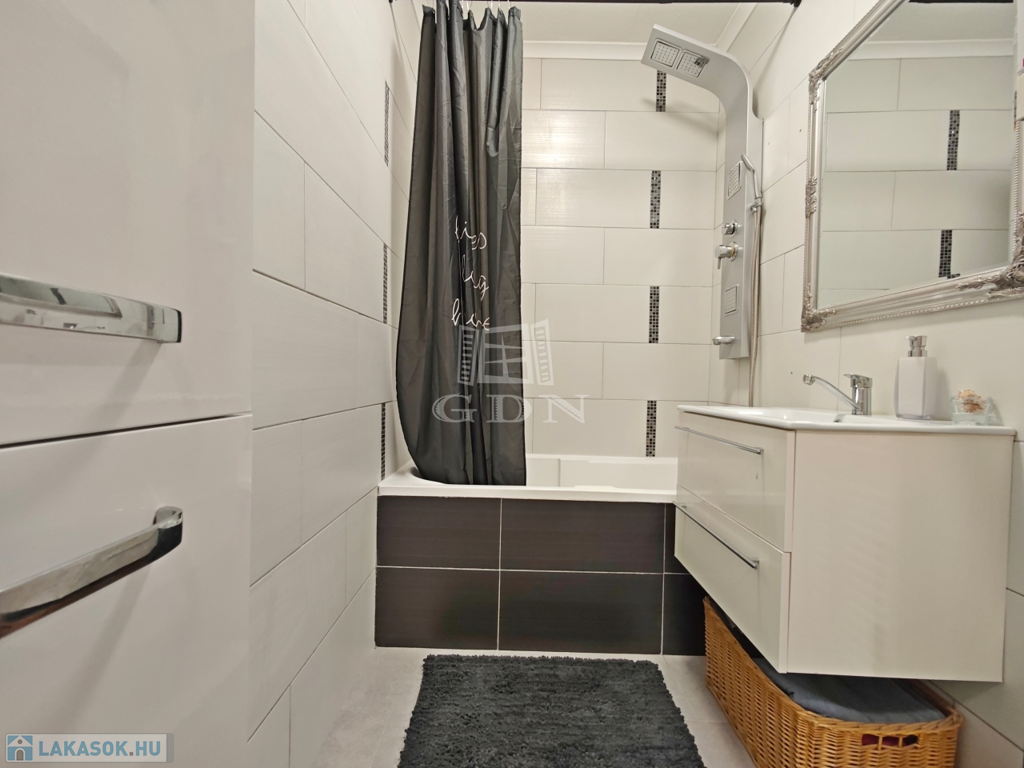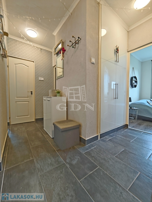 A lakáshoz tartozik egy kb 2m2-es közös tároló (a tetőn található).