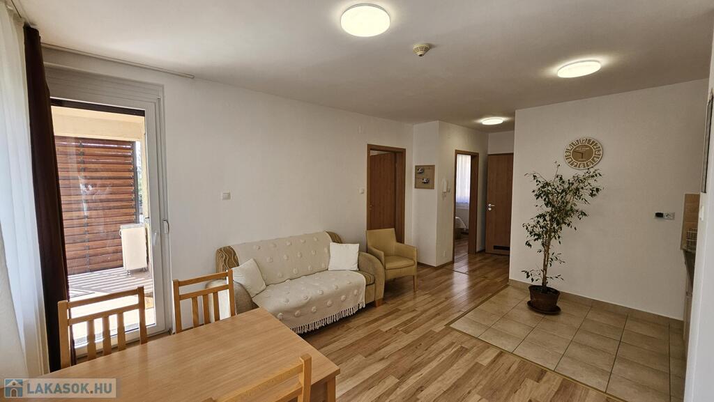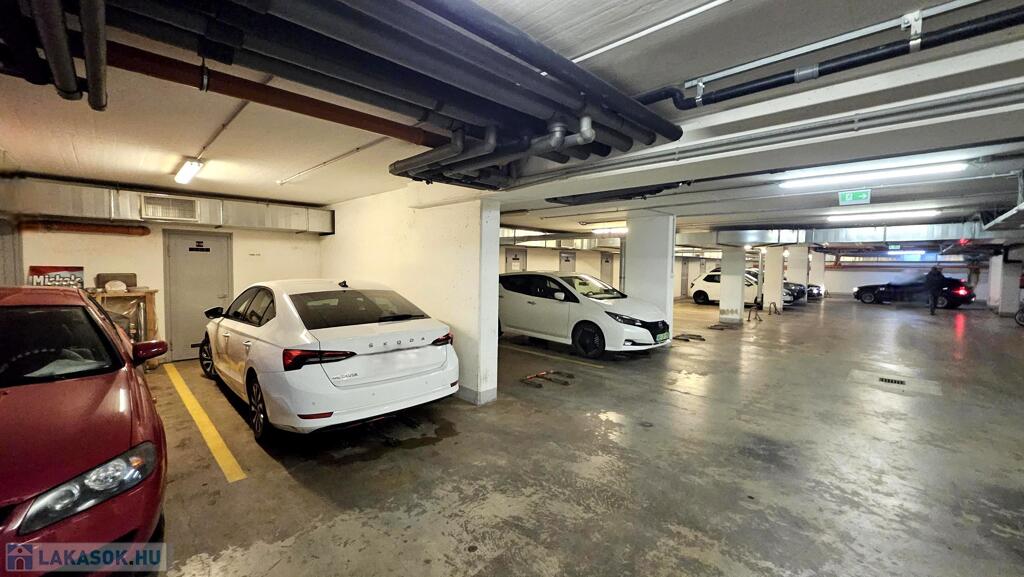 A lakáshoz tartozik egy távirányítós garázskapuval ellátott teremgarázsban lévő gépkocsi beálló is, melynek ára: 7 M