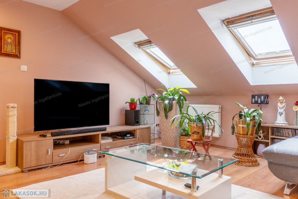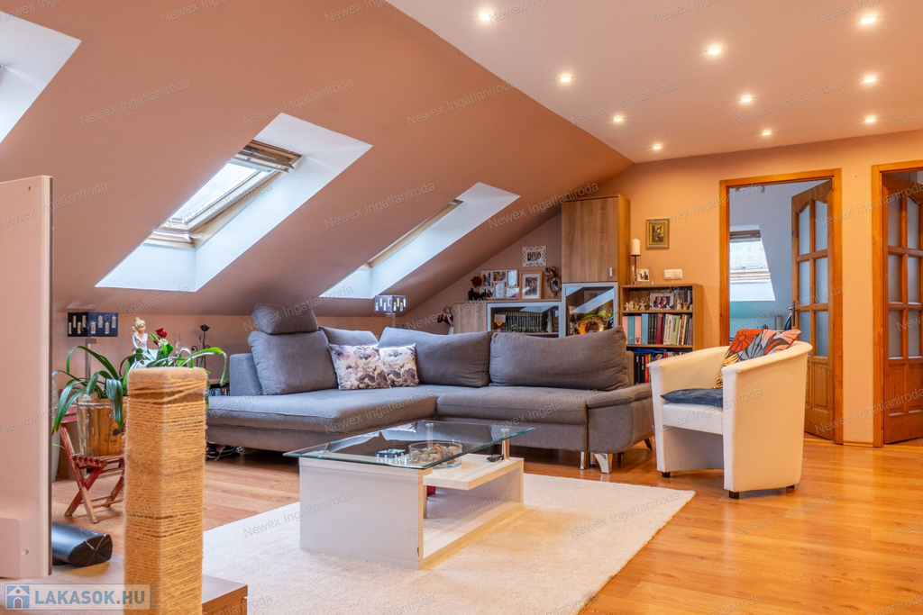 Eladó egy tágas, modern, újszerű, különleges hangulatú, világos, tetőtéri lakás, nemcsak kényelmes otthonként, de kiváló befektetésként is megállja a helyét!