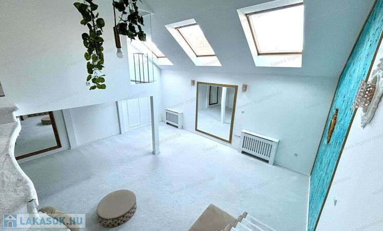 A tetőtéri elhelyezkedésnek köszönhetően az egész lakást természetes fény járja át.