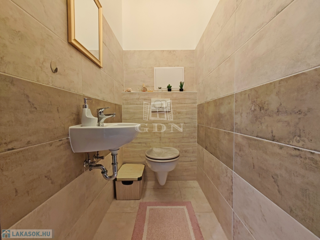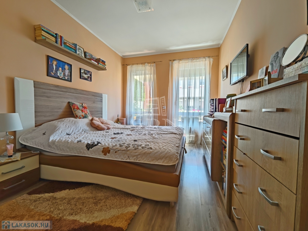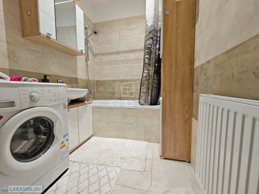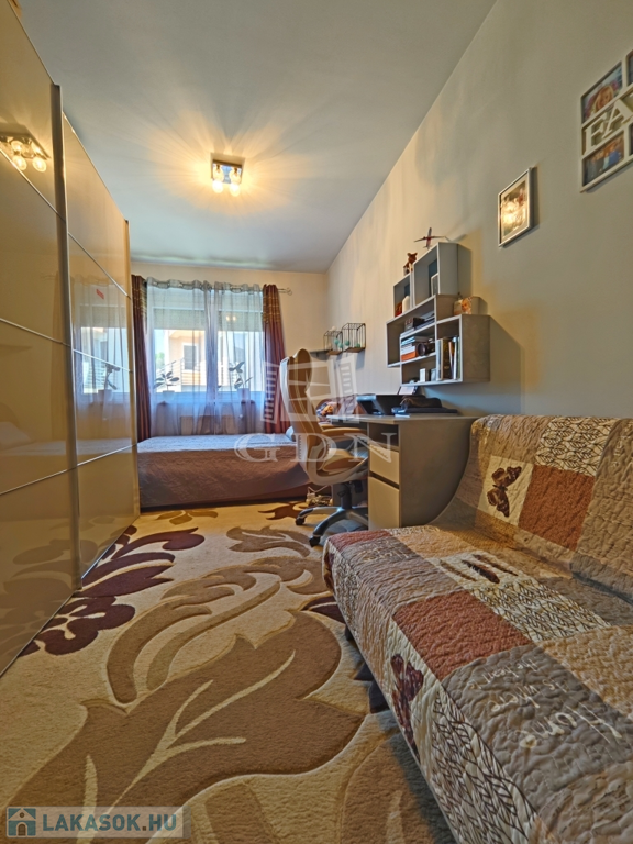 A lakással együtt eladó egy, a mélygarázsban lévő GÉPKOCSI BEÁLLÓ és egy, közvetlenül mellette található 9 m2-es tároló.