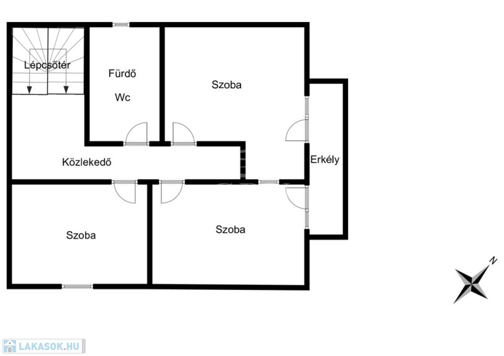 Elrendezés: nappali + 3 hálószoba