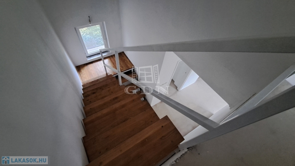 Kialakítás: kétszintes, modern terek, DK-i tájolással