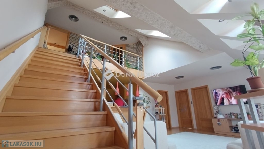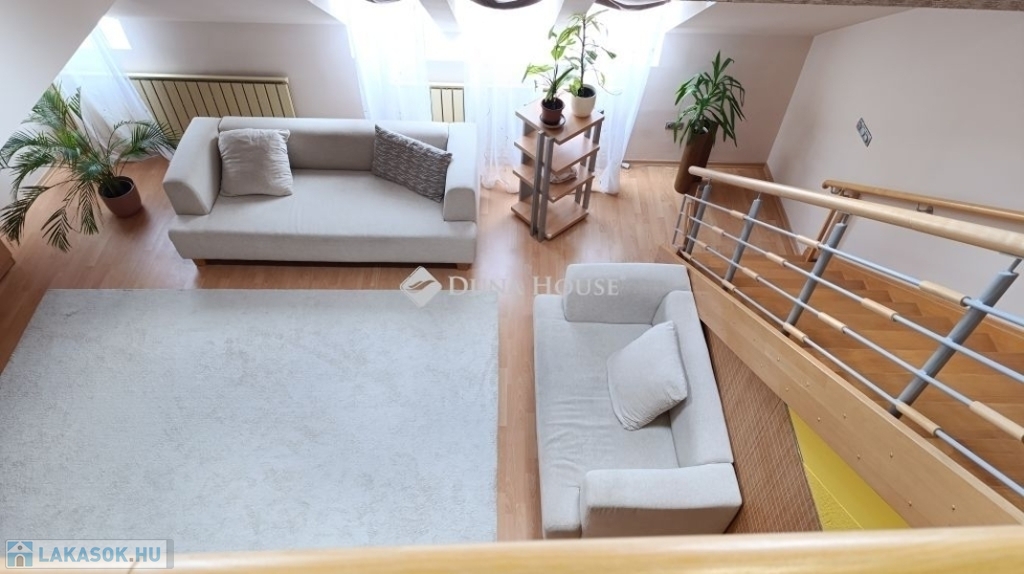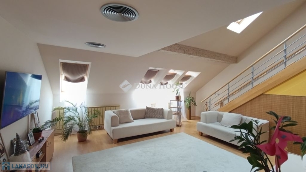 Egyedi belvárosi lakás Mohács szívében.A 127m2-es tágas tetőtéri két szintes lakás várja új tulajdonosát. Miért jó a belvárosban lakni ?Mert minden egy karnyújtásnyira van , hivatalok, boltok, bankok, piac.De a Duna is csak pár lépés, ha esti sétára indulnánk.Ahogy belépünk a lakásba kényelmesen bepakolhatunk egy egész falat elfoglaló praktikus beépített szekrénybe.Innen nyílik a a konyha, és az étkező amit egy pult választ el a hatalmas nappalitól.A nappali különleges belmagassága, bevilágító ablakai miatt napfényes különleges hangulatot áraszt.A fürdőszobában nagy sarokkád, és hangulatos fürdőszobabútor nagy tükörrel várja új tulajdonosát.A wc külön helyiségben van.A hálószoba körablaka extra megjelenést kölcsönöz a helyiségnek. A földszinten még egy szoba van.A hangulatos lépcsőn juthatunk fel a galériás emeleti helyiségekbe, itt két szoba van.A galérián kapott helyet a klíma is így kellemes hőmérsékletet biztosít nyáron is a lakásban.Ajánlom ezt a lakást, családoknak hiszen több szoba van és itt mindenki elfér.Az idősebb korosztály számára is megfelelő lehet hiszen lift van a lépcsőházban.Ne hagyja ki ezt a különleges lehetőséget, hogy otthonává tehesse ezt a fényűző tetőtéri lakást.Érdeklődjön bátran, Várom hívását a hét bármely napján!