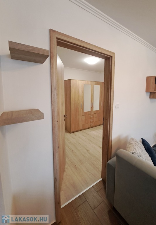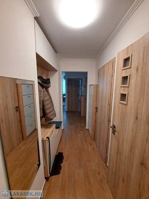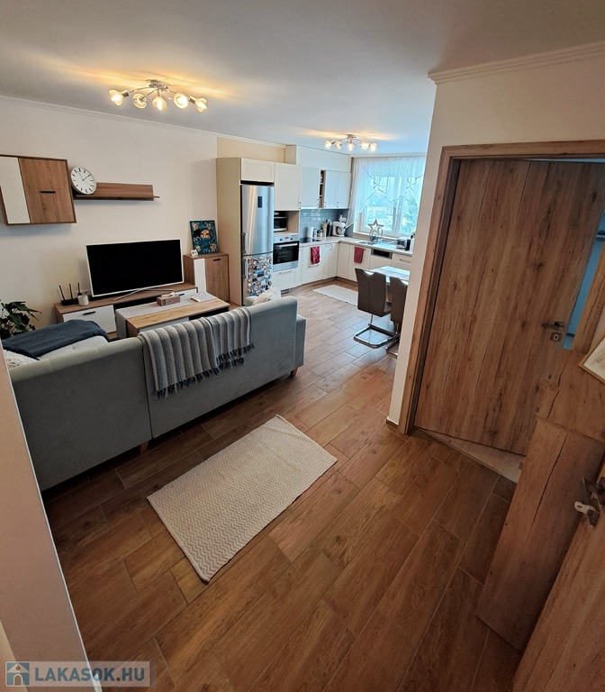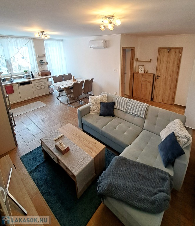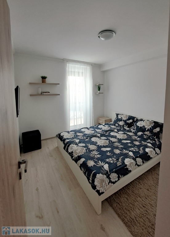 2018-ban, közel az osztrák és szlovák határokhoz, illetve az M1-es autópályához, a város ipartelepi részén, újonnan épült társasház 1. emeletén eladó egy 57 nm2-es, K-i tájolású, fiatalos tégla lakás. Elosztása: előszoba , 2 külön szoba, nappali-konyha , fürdőszoba, külön mellékhelyiség, 2 franciaerkély, külön kazán helyiség, amely tárolásra is alkalmas. Az ablakok redőnnyel és szúnyoghálóval felszereltek. 2024-ben beszerelt hűtő-fűtő klíma gondoskodik a nyári melegben a hűtésről, illetve télen padlófűtés a megfelelő melegről. A lakás a benne lévő beépített gépek és bútorok nagy részével együtt eladó, így kiváló lehetőség befektetőknek is. A társasház alatt, zárt udvarban teremgarázs hely bérelhető, illetve ugyan itt zárt, közös kerékpártároló is van. A környék csendes, közelben általános iskola, óvodák, bevásárlóközpontok, boltok találhatóak.