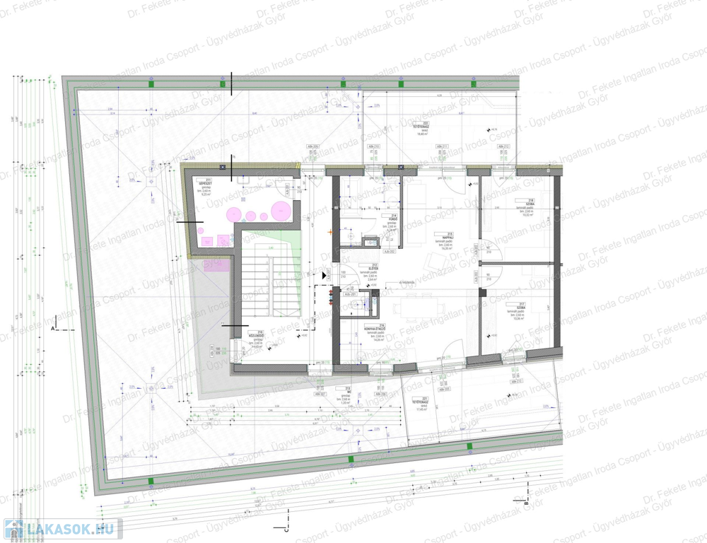 A meghirdetett ingatlan két oldalról világos, 2. emeleti, 61,87 nm lakóterű, nappali + 2 szobás, + 2 db hatalmas terasszal (36 nm) rendelkezik. A 2. emeleten csak 2 db ingatlan készül.