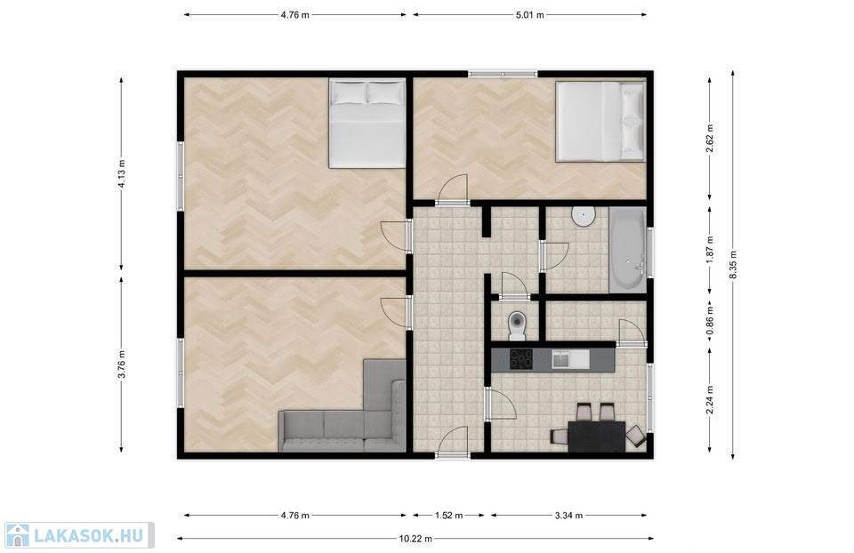 Eladásra kínálunk egy 71 m²-es, magasföldszinti, világos lakást, amely Nagyigmánd egyik legkeresettebb részén található. Kiváló elrendezése és tágas terei miatt ideális családok, fiatal párok vagy idősebbek számára is.