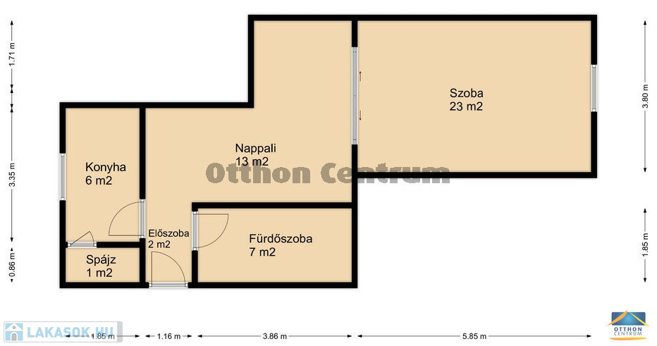 Nagykanizsa fő utcáján helyezkedik el a lakás ami a 2. emeleten található, nagyon csendes mivel a vastag falak jól kiszűrik a város zaját.