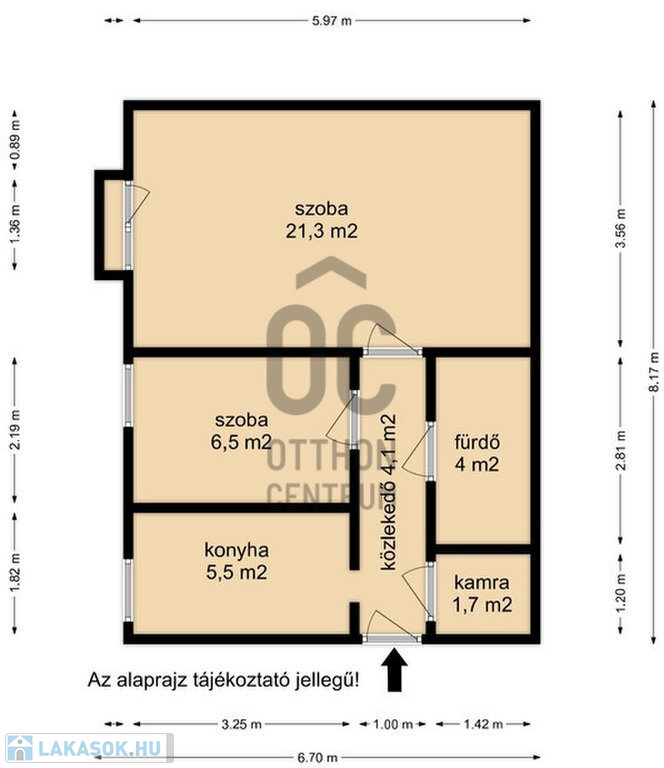 A lakás kiváló lehetőség első otthonnak, befektetésnek, vagy kiadásra, elhelyezkedése miatt könnyen bérbe adható.