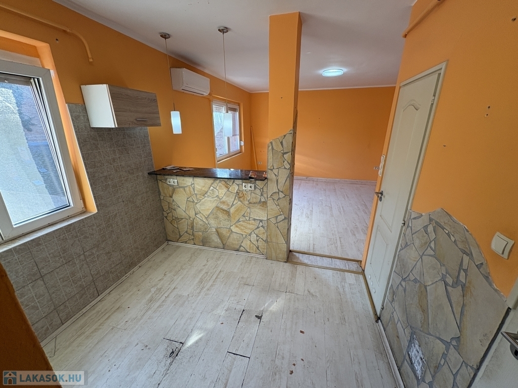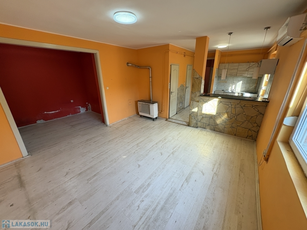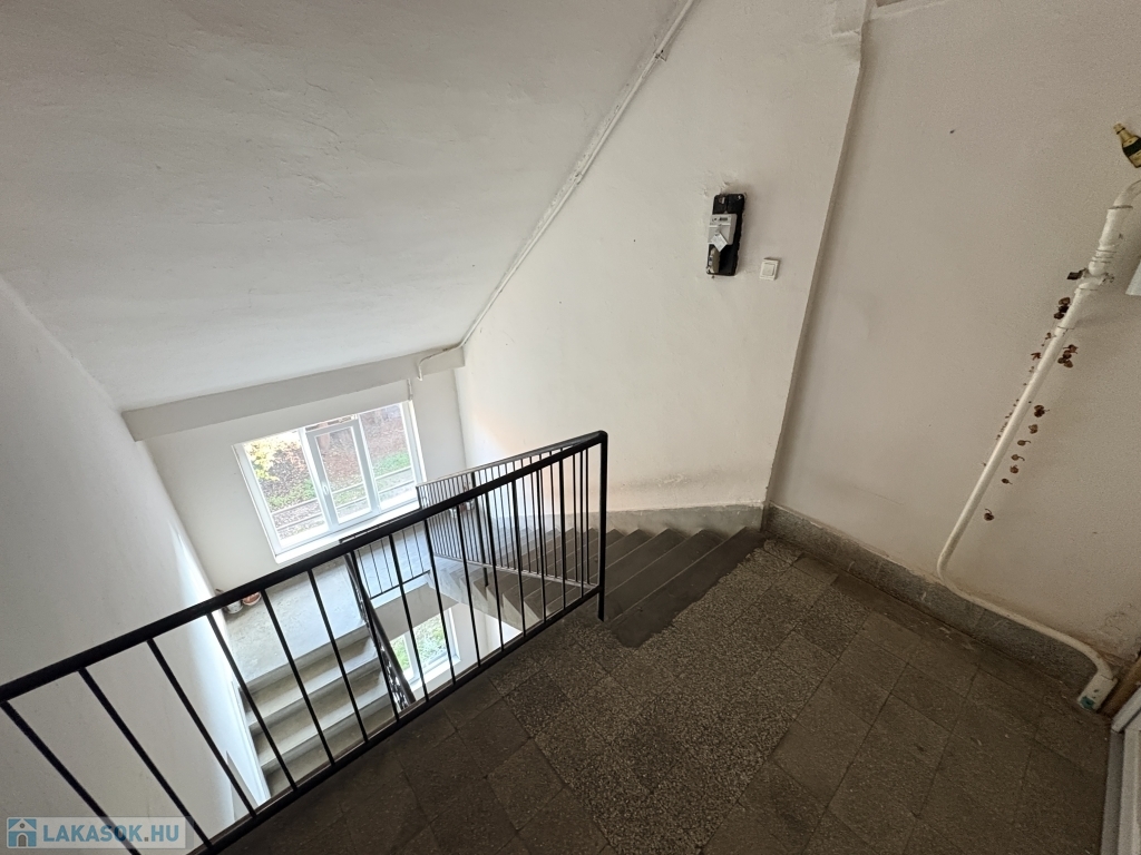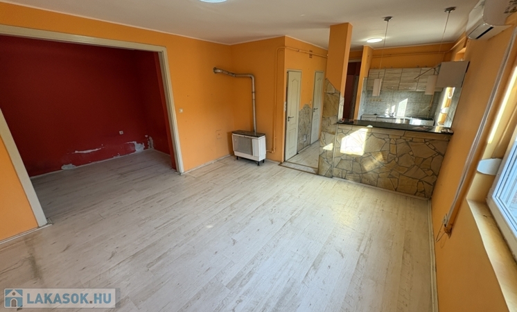 A 47 nm-es 1 nappali +2 fél szobás tégla lakás 1986-ban épült. Az 5 lakásos társasházban a második emeleten helyezkedik el, közvetlen szomszédja nincs. A lakás melletti közel 60 nm-es betonos padlásteret a lakás tulajdonosai használják tárolási célra.