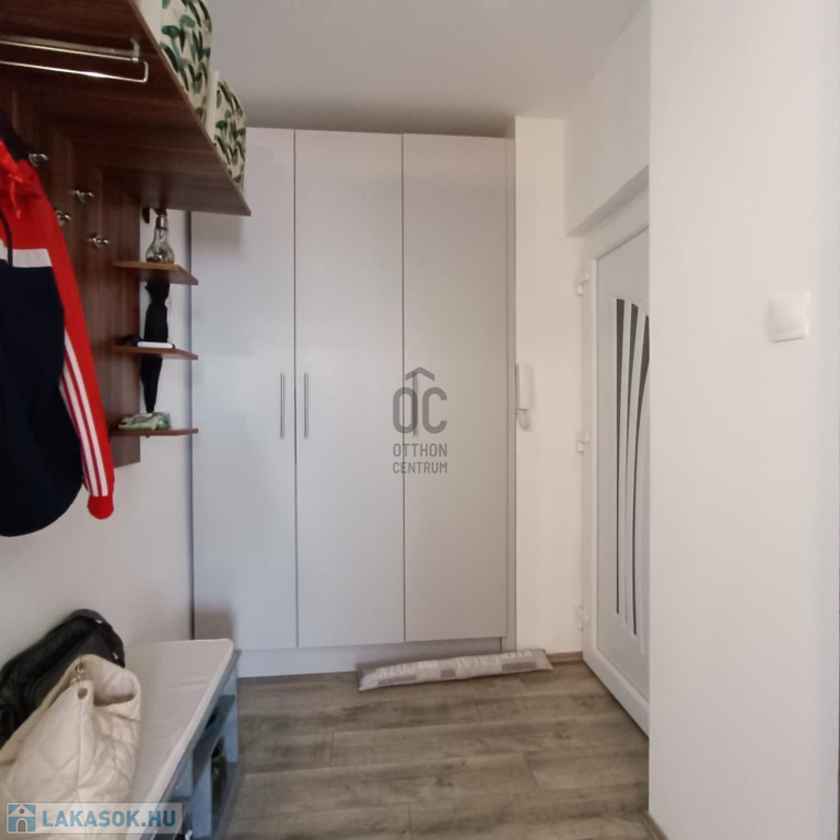 - felosztása: konyha, étkező-nappali, 1 hálószoba, amely erkélykapcsolatos, közlekedő, beépített szekrény, fürdő, külön WC, tároló