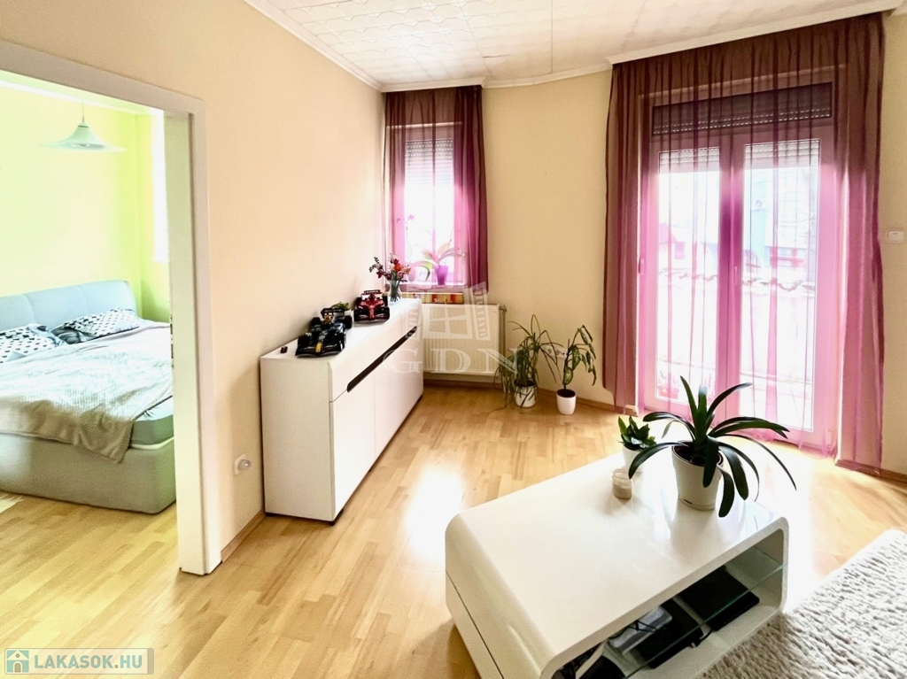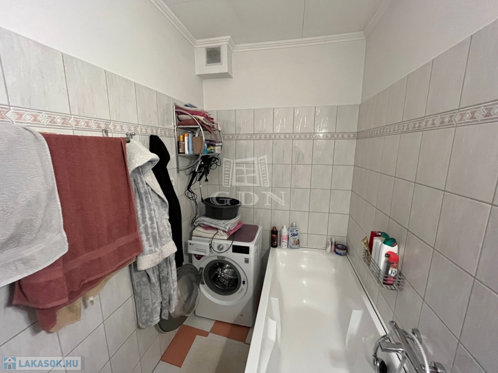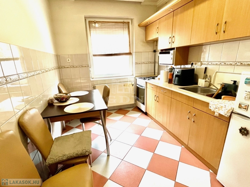 Elosztása: konyha/étkező, erkélykapcsolatos nappali, 1 hálószoba, közlekedő, fürdőszoba, külön WC, tároló