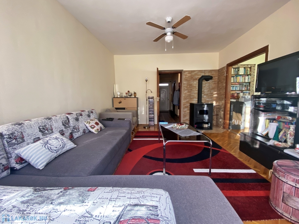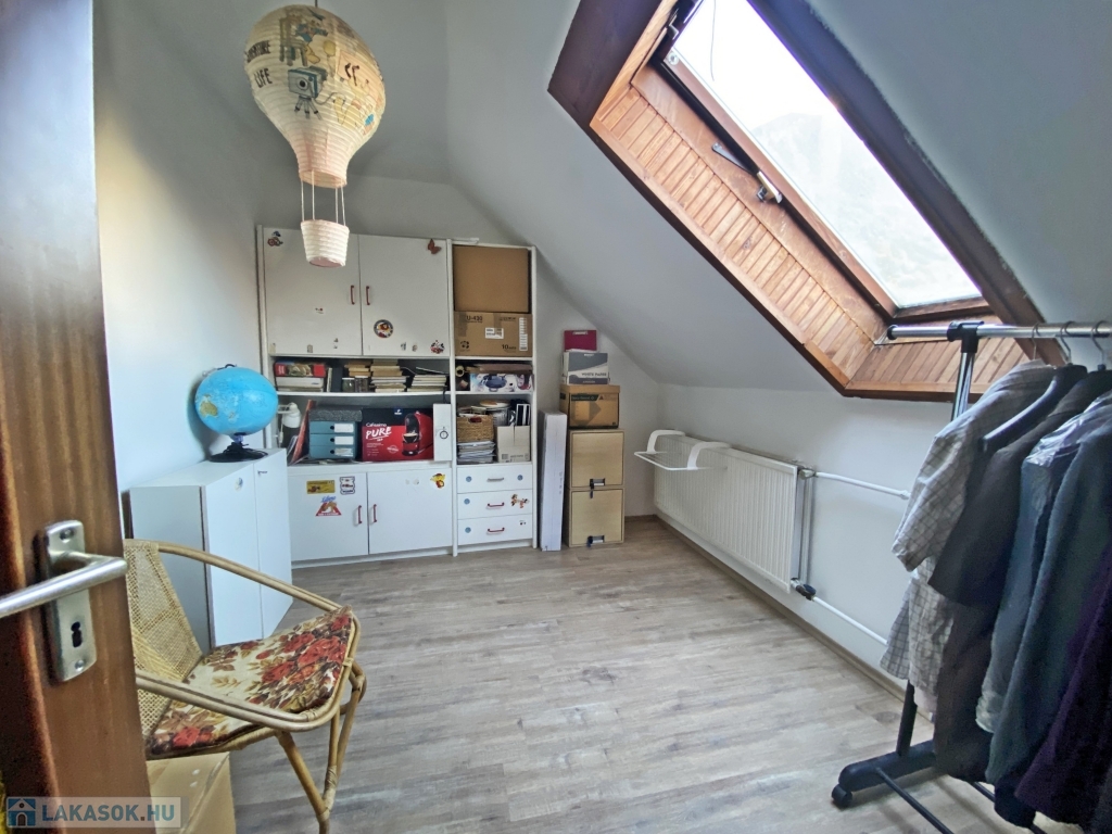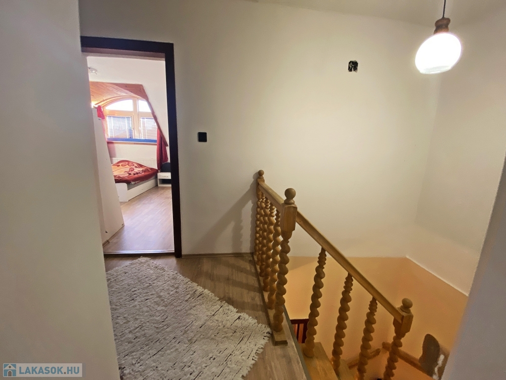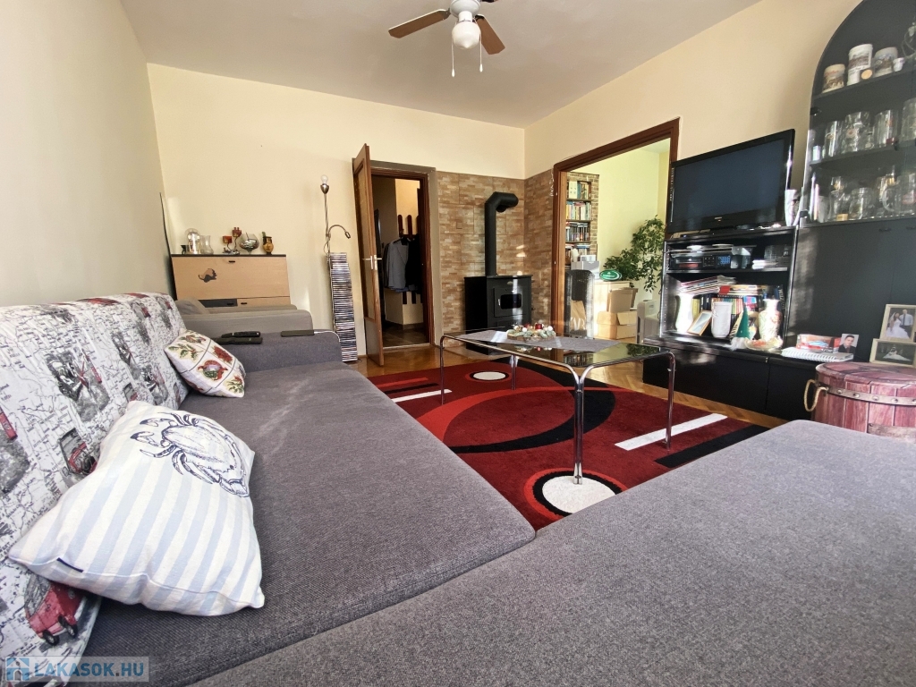 Az ingatlan egy 1990-ben épült társasház harmadik emeletén található, ahonnan a tágas, napfényes déli fekvésű nappaliból csodás panoráma tárul elénk. Az ingatlanban 3 éve történt felújítás, melynek során a felső szint laminált parkettája cserélve lett, a wc-be új burkolat és szaniter került, a konyha és előszoba padlóburkolata szintén megújult. A nappali nyugati oldalát 7 mm-es grafitos hőszigeteléssel látták el. A konyha keleti fekvésű, melyhez kamra is tartozik. Az ablakok még az eredetiek, a bejárati ajtó azonban cserélve lett.