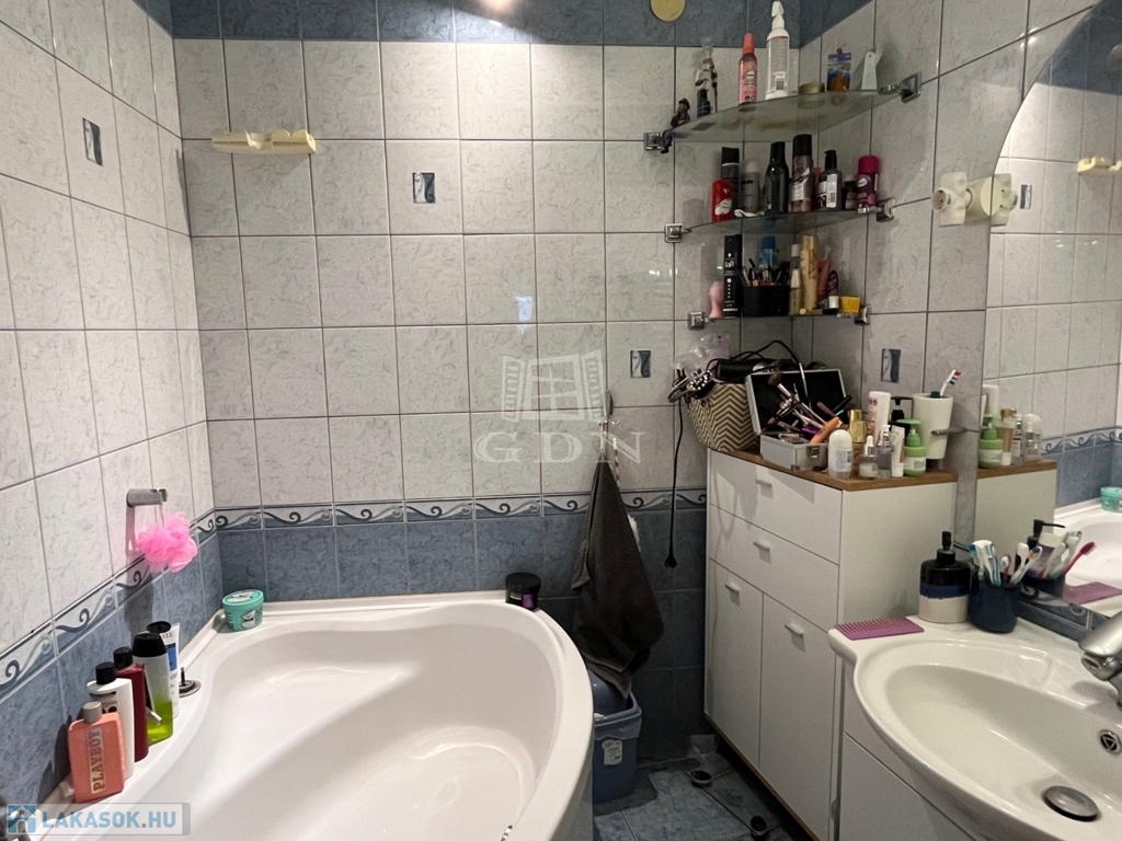 A lakáshoz egy panorámás erkély is tartozik, valamint egy praktikus gardrób és egy zárt tároló is rendelkezésre áll a használati tárgyaknak. A sarokkádas fürdőszoba mellett egy önálló helyiségben található toalett is növeli a lakók komfortérzetét.