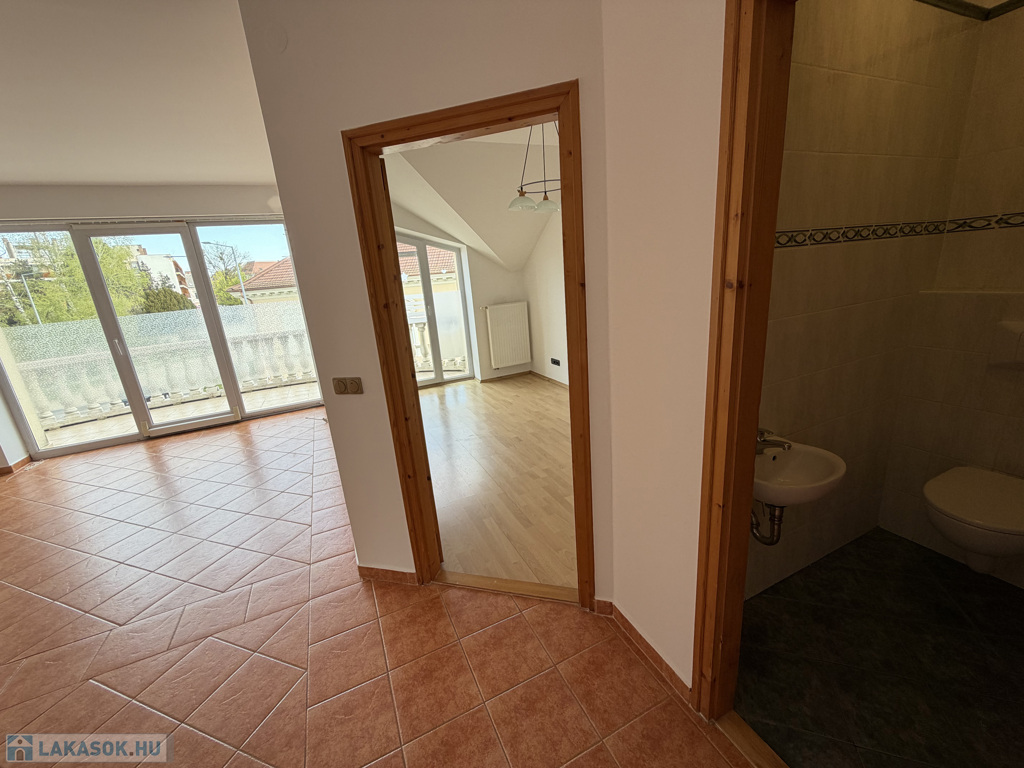 Az ingatlan egyik legnagyobb értéke a tágas, világos élettér és a nappaliból nyíló hangulatos erkély, ahonnan a város egyik legszebb részére nyílik kilátás – itt a reggeli kávé tényleg élmény.
