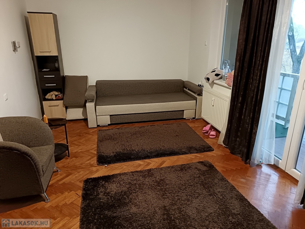 Nyíregyháza belvárosában, Korző közelében eladó egy 37 m²-es, 1 szobás, nagy loggiával rendelkező lakás, téglaépítésű társasház 3. emeletén.