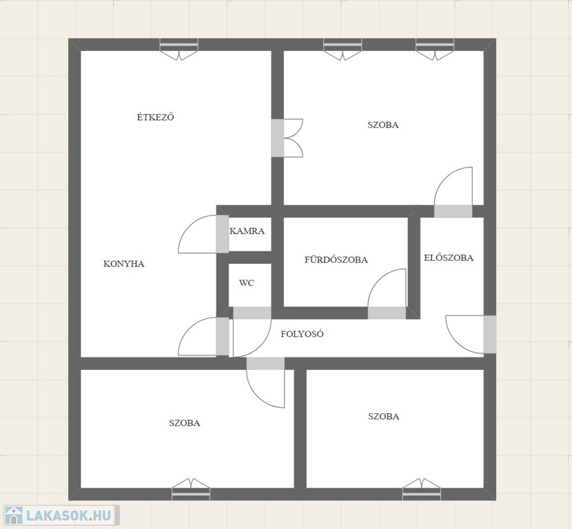 Nyíregyháza, Vasgyár utcán eladó 64 m2-s, három különnyíló szobás, konyha+étkezős, külön fürdőszoba és wc, kamra, műanyag nyílászárós, mért távhős felújítandó lakás téglaépítésű társas házban a harmadik emeleten. Közös tároló és zárt udvari parkolás tartozik a lakáshoz.