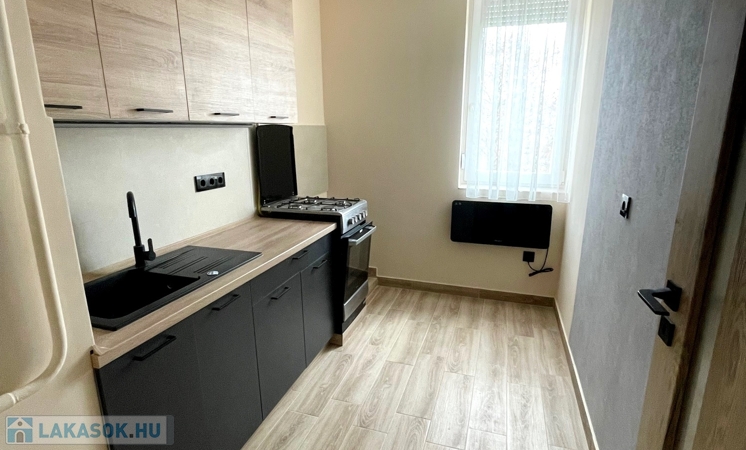 Nyíregyházán a Belváros közelében eladó egy teljes körűen felújított, azonnal költözhető, 49 m²-es lakás, amely egy szigetelt, téglaépítésű társasház 4. emeletén található, az Arany J. u. elején. A lakás modern kialakítású, praktikus elrendezésű, burkolatai járólap és laminált kombinációja. Új, gépesített konyhabútorral rendelkezik elektromos főzőlappal, a fűtésről két gázkonvektor és egy hűtő-fűtő klíma gondoskodik. Tartozik hozzá külön tároló és udvari parkolási lehetőség is biztosított. A társasház rendezett, jól karbantartott és szigetelt. A lakás esztétikailag és műszakilag is újszerű, alacsony fenntartási költségekkel, így ideális fiataloknak, pároknak vagy befektetésnek, mivel könnyen kiadható.Az ingatlan azonosítója: 100015Érdeklődni: +36703610015 Az ingatlan azonosítója: 100015 Érdeklődni: +36703610015