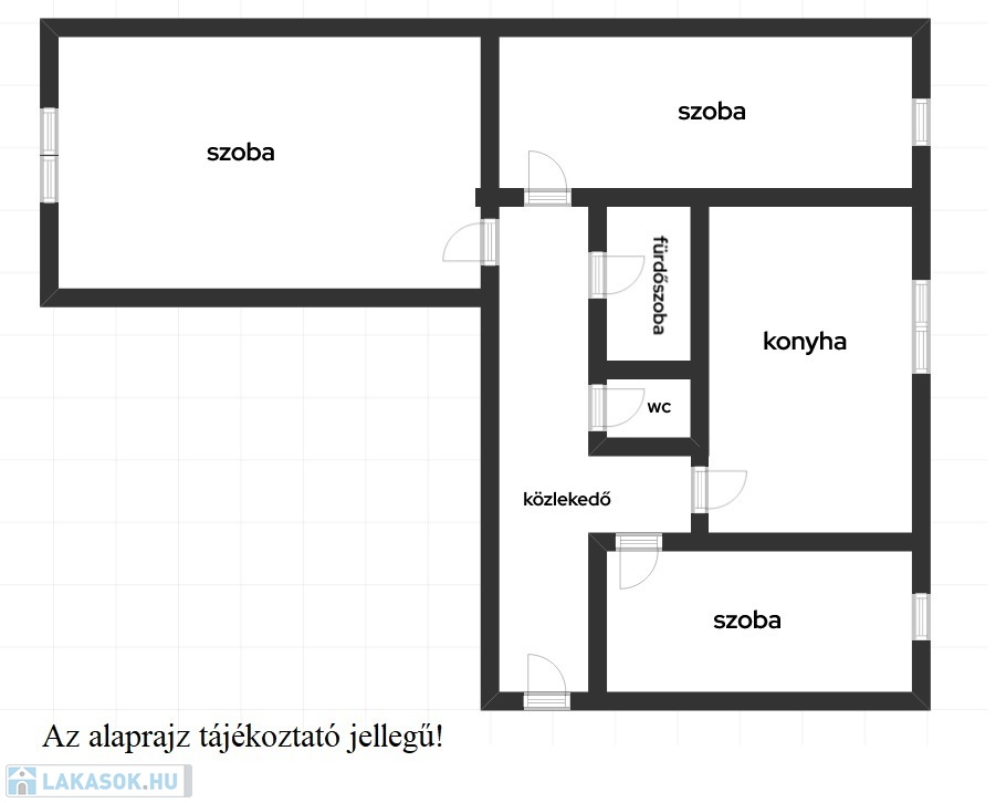 Elosztása: 3 külön nyíló szoba, konyha-étkező, fürdőszoba, wc (külön helyiségben), közlekedő, beépített szekrény, erkély.