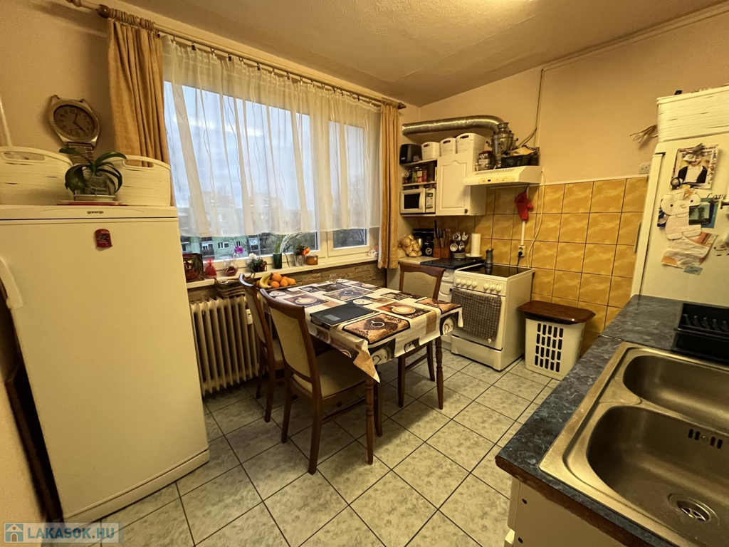 Nyíregyháza Vasútállomáshoz közel az Árpád utcában eladó egy negyedik emeleti, 79 nm-es, 3+1 szobás, mért távfűtéses, erkélyes lakás.