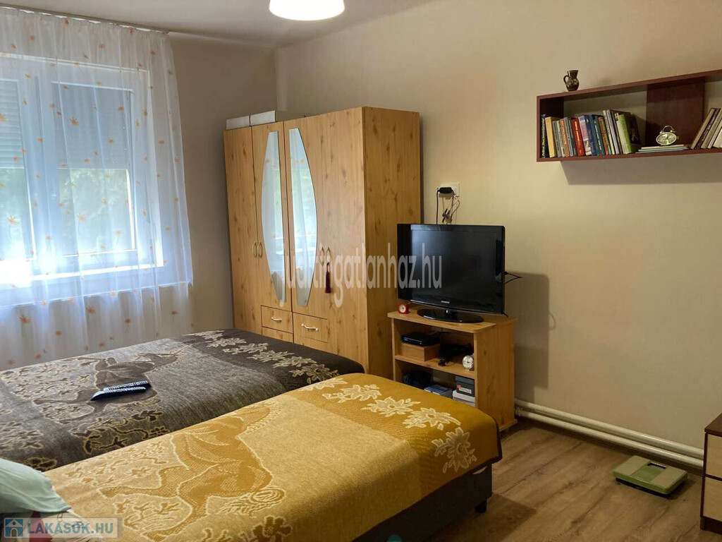 Nyíregyházán a Malomkertben eladó 54 m2-s, kettő különnyíló szobás, műanyag nyílászárós mely redőnnyel felszerelt, egyedi gázfűtésű, jó állapotú lakás téglaépítésű társas házban az első emeleten. Az ingatlan zárt udvaros házban helyezkedik el, tartozik hozzá egy 18 m2-s udvari garázs, alagsorban zárható kb. 6 m2-s pince a beépített konyhabútor és kombi tűzhely. Költözés megegyezés szerint.